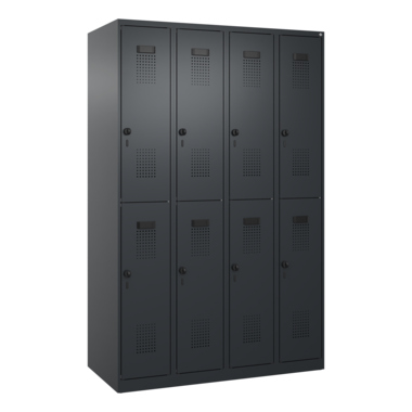 C+P Kleiderspind Evolo PLUS 1.200 x 1.850 x 500 mm (B x H x T) 4 Abteile Stahl Farbe der Front: schwarzgrau Farbe des Korpus: schwarzgrau