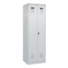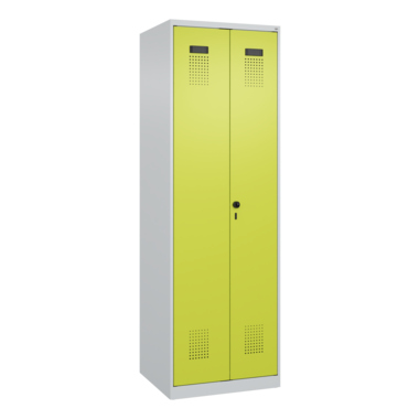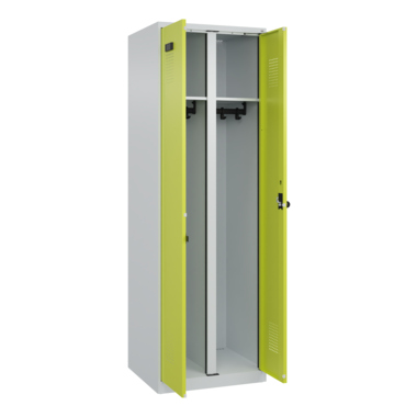 Schwarz-Weiß-Spind Evolo PLUS, 2 Abteile für 1 Person, zur getrennten Unterbringung von Privat- und Berufskleidung. Mit hochwertiger Einbrennbeschichtung für hohe UV- und Korrosionsbeständigkeit, geschlossene und abgeschrägte Seitenprofile für leichte Innenreinigung und komfortable Entnahme von Kleidung und Taschen. Geeignet für verdeckte Kabelführung. Mit hinteren Belüftungsöffnungen oben und unten. Innen je Abteil 1 Ablageboden. Darunter 1 stabile Garderobenstange aus Ovalprofil mit 3 verdrehsicheren Doppel-Schiebehaken inkl. Systemaufnahme. Türen zueinander schlagend für gemeinsamen Verschluss. Türöffnungsbegrenzer als Schutz vor Überdehnen der Tür. Mit Soft-Anschlag und geschlossenen Seitenprofilen für höchste Stabilität. Mit reinigungsfreundlichem Belüftungslochbild oben und unten. Aufhängung in stabilen Drehbolzen. Ergonomische Sicherheits-Drehriegel für Vorhangschloss mit Bügelstärke 6 bis 8 mm, inkl. Tür-Schutz. Kunststoff-Etikettenrahmen, schwarz, selbstklebend, inkl. Klarsichtkunststoff-Abdeckung und weißem Etikett zur individuellen Beschriftung. Achtung: Anlieferungsmöglichkeit durch Sattelschlepper muss gegeben sein.