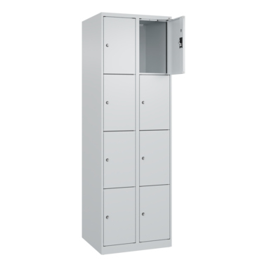 Schließfachschrank Evolo PLUS mit hochwertiger Einbrennbeschichtung für hohe UV- und Korrosionsbeständigkeit. Geschlossene und abgeschrägte Seitenprofile für leichte Innenreinigung und komfortable Entnahme von Kleidung und Taschen. Geeignet für verdeckte Kabelführung. Mit Bodengleitern als praktischer Schrank- und Fußbodenschutz. Tür(en) rechts angeschlagen. Türen mit Soft-Anschlag und geschlossenen Seitenprofilen für höchste Stabilität. Mit reinigungsfreundlichem Belüftungslochbild oben und unten. Aufhängung in stabilen Drehbolzen. Türöffnungsbegrenzer, als Schutz vor Überdehnen der Tür. Achtung: Anlieferungsmöglichkeit durch Sattelschlepper muss gegeben sein.