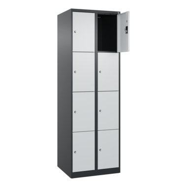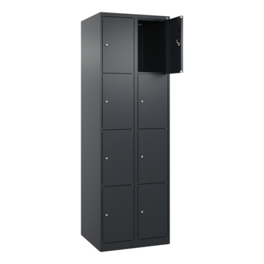 Schließfachschrank Evolo PLUS mit hochwertiger Einbrennbeschichtung für hohe UV- und Korrosionsbeständigkeit. Geschlossene und abgeschrägte Seitenprofile für leichte Innenreinigung und komfortable Entnahme von Kleidung und Taschen. Geeignet für verdeckte Kabelführung. Mit Bodengleitern als praktischer Schrank- und Fußbodenschutz. Tür(en) rechts angeschlagen. Türen mit Soft-Anschlag und geschlossenen Seitenprofilen für höchste Stabilität. Mit reinigungsfreundlichem Belüftungslochbild oben und unten. Aufhängung in stabilen Drehbolzen. Türöffnungsbegrenzer, als Schutz vor Überdehnen der Tür. Achtung: Anlieferungsmöglichkeit durch Sattelschlepper muss gegeben sein.