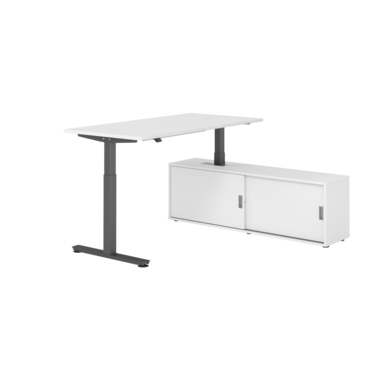 Hammerbacher Schreibtischkombination XMST16 Maße: Schreibtisch: 1.600 x 710-1.200 x 800 mm, Sideboard: 1.600 x 520 x 400 mm (B x H x T) Spanplatte, melaminharzbeschichtet weiß