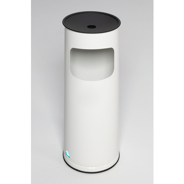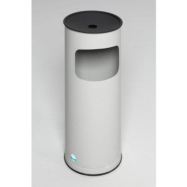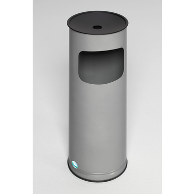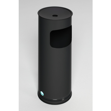 Abfallsammler/Ascher H 61 K. Der Ascheraufsatz ist bei allen Ausführungen schwarz beschichtet. Mit Aluminiumauffangschale für Zigarettenabfall. Bodenschonender Kantenschutz.